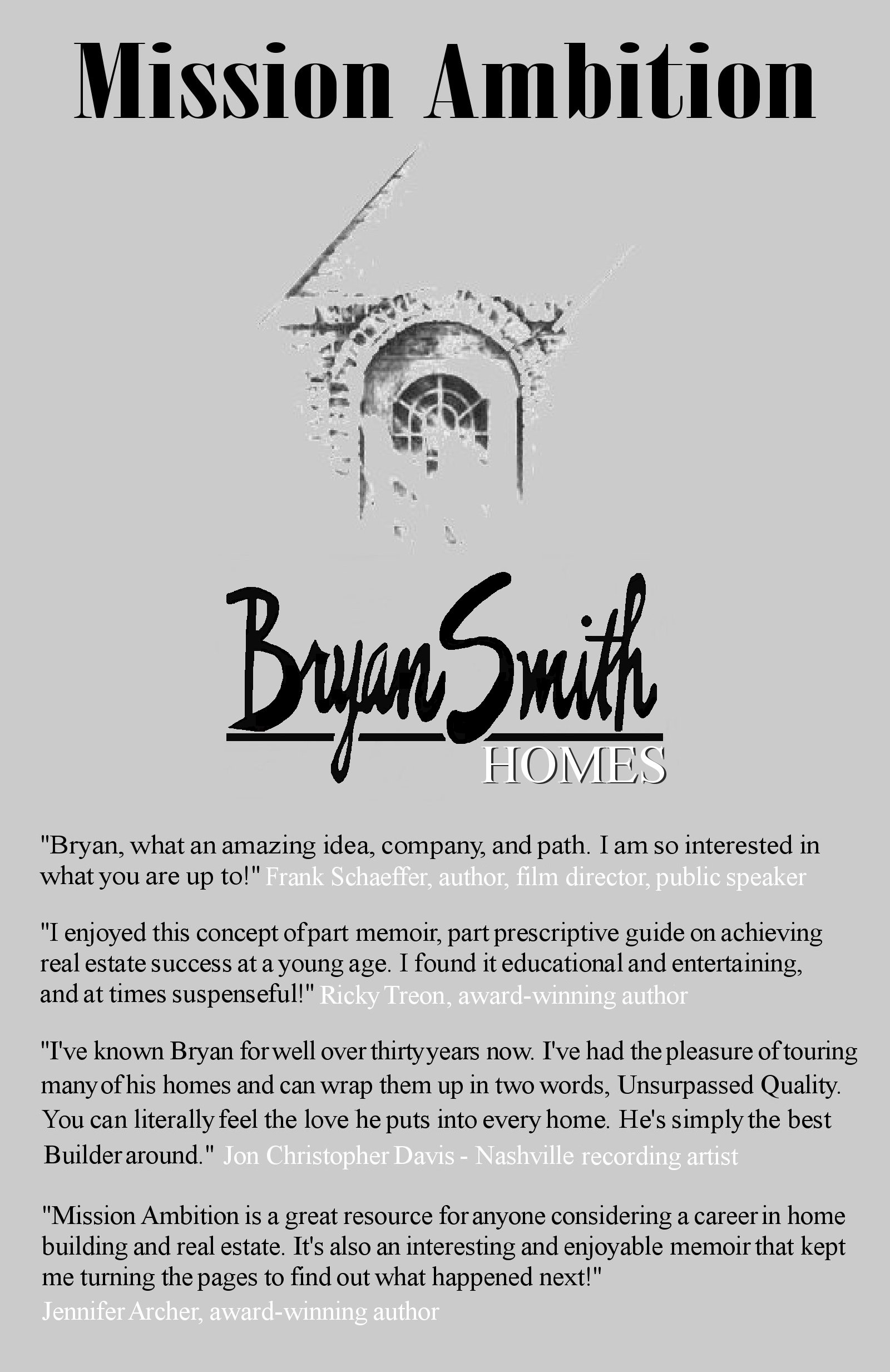 Mission Ambition is the first book from the creator of the Award Winning, International company, Texas Tiny Homes, Inc that has hundreds and hundreds of house plan design clients, and plan buying customer in 9 countries so far, including those in 48 US states. Bryan David Smith, it’s founder has been a trend setting plans designer, high-end, luxury home builder, land developer in North Central Texas since 1977.