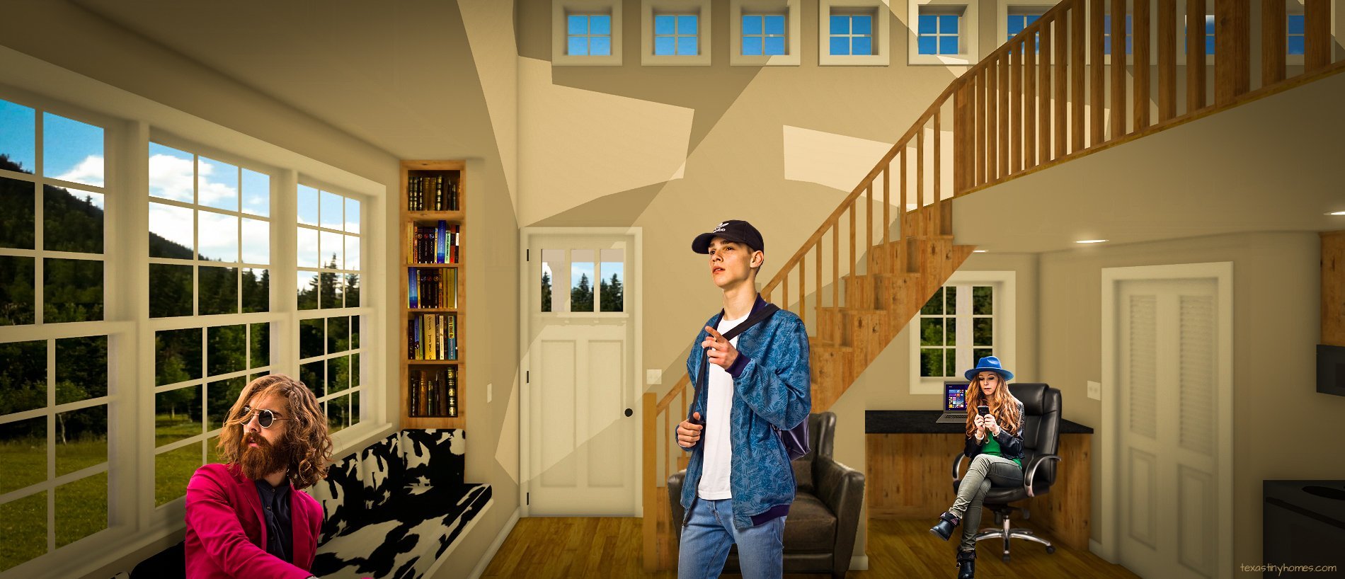 View Of Stairs and Upper Windows – With Furniture and Models-5 2 W Address Published February 21, 2018 at 1900 × 818 in Plan 448F | Farmhouse