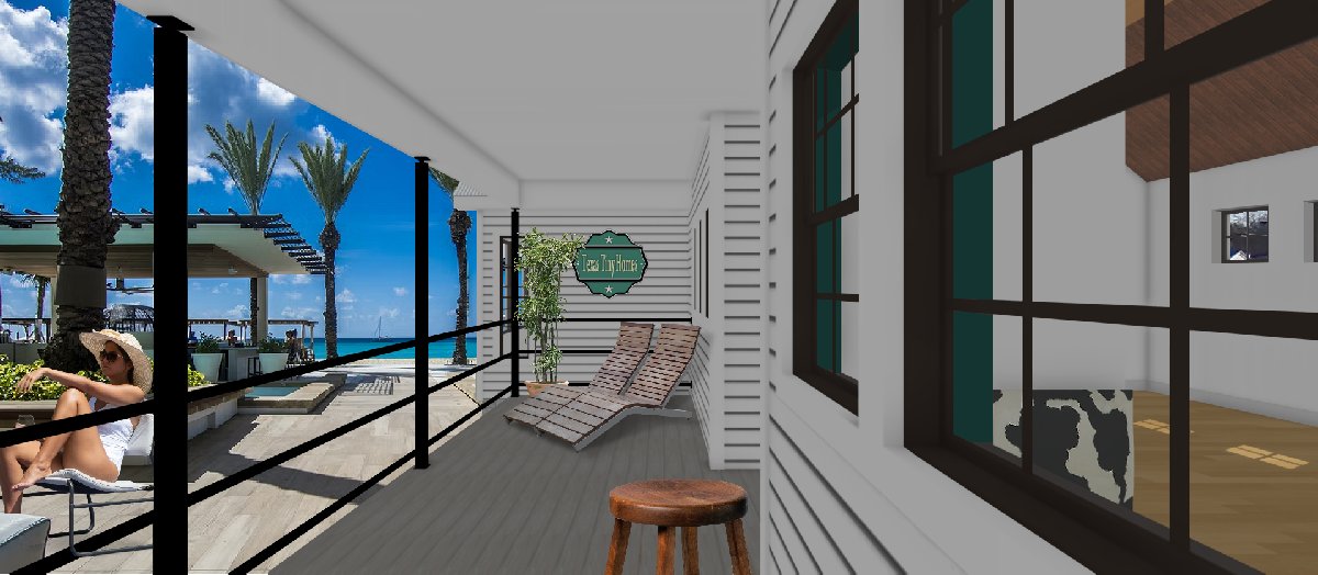 View into Living From Rear Porch Ocean Front With Model X 1200 JPG Published June 26, 2022 at 1200 × 524 in Tiny Home Villages